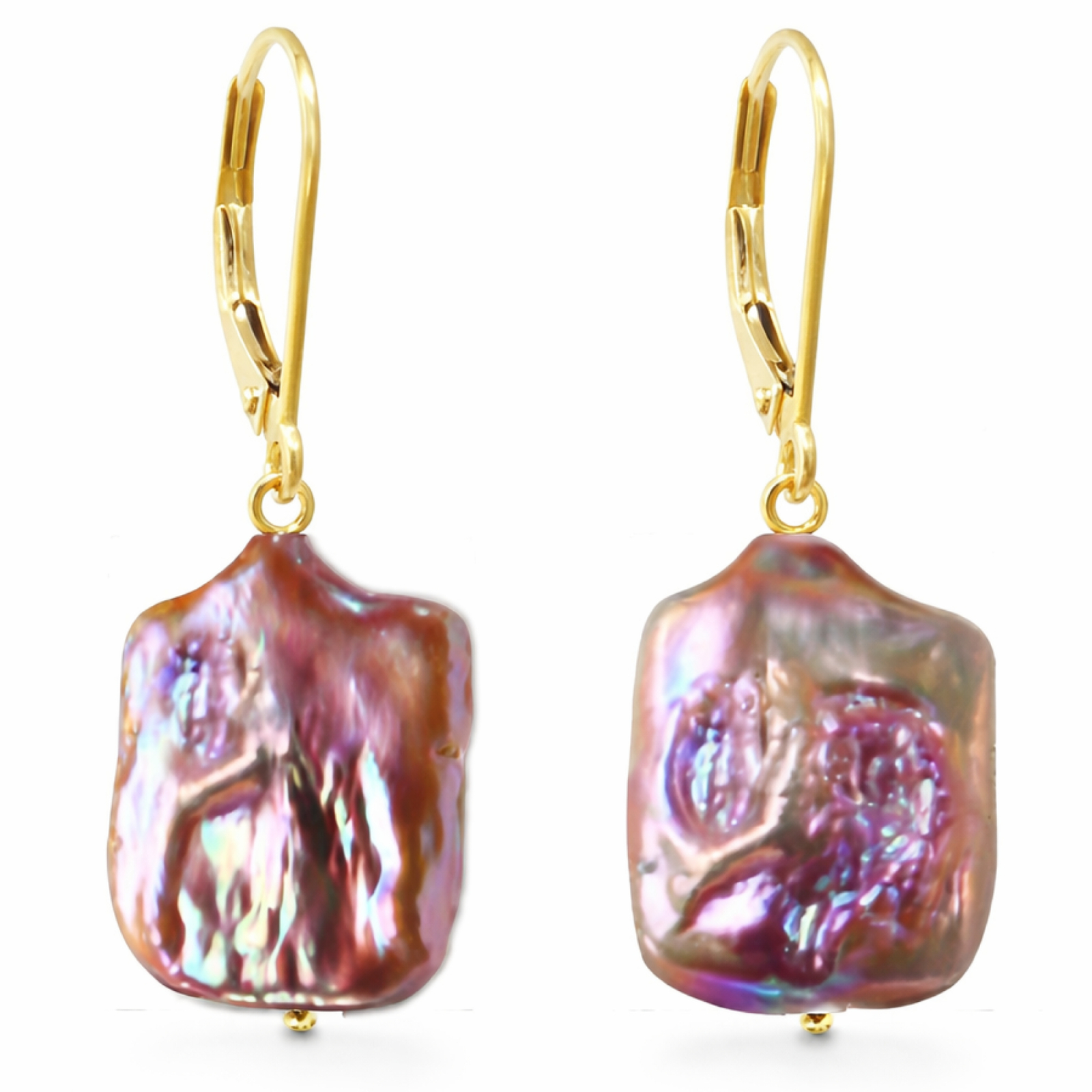 Náušnice Přírodní Barokní Vícebarevné Perly 16,5×25 mm, Zlato 14K (585), Uzavřené Zapínání | KASKADDA®